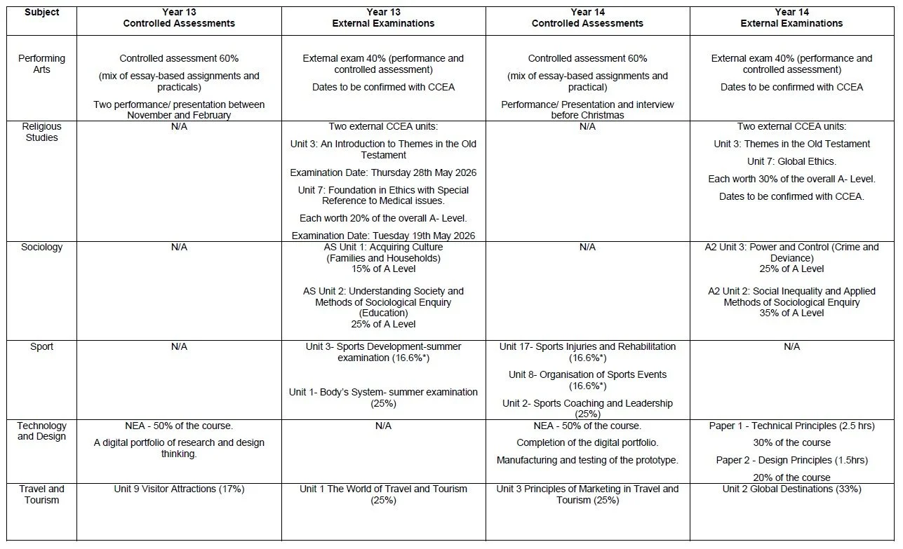 The majority of our sixth form students study ‘AS’ and ‘A2’ Level subjects. Students may study up to 4 subjects at ‘A’ Level.